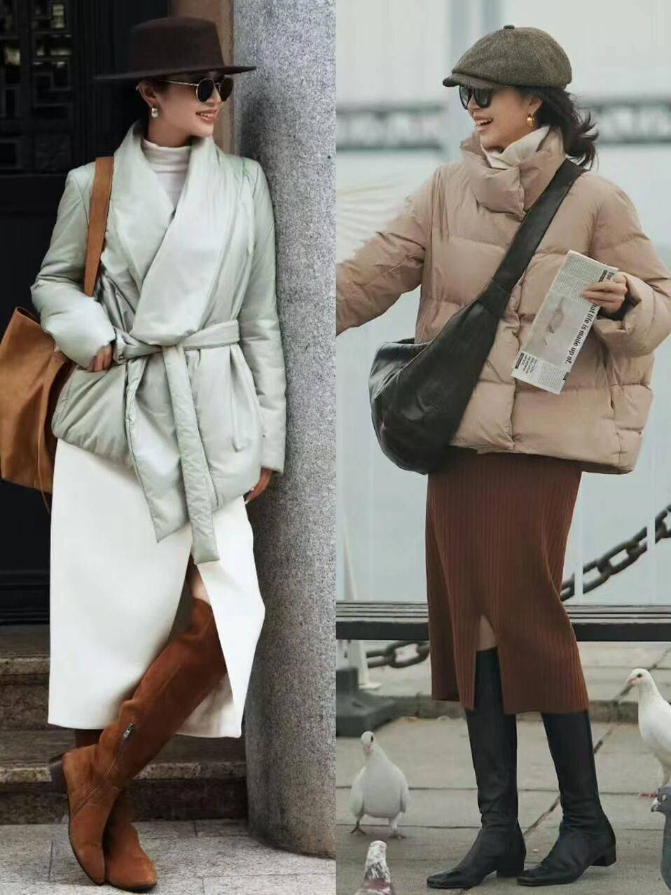 而况,“三木”用羽绒服搭配裙子和裤子,展现出来的礼貌有着很大区别,比如上头影开叉半身裙来组合,短暂变得很有女东谈主味,显得会愈加良善又女东谈主味,这样的搭布气象,谁能不爱呢!