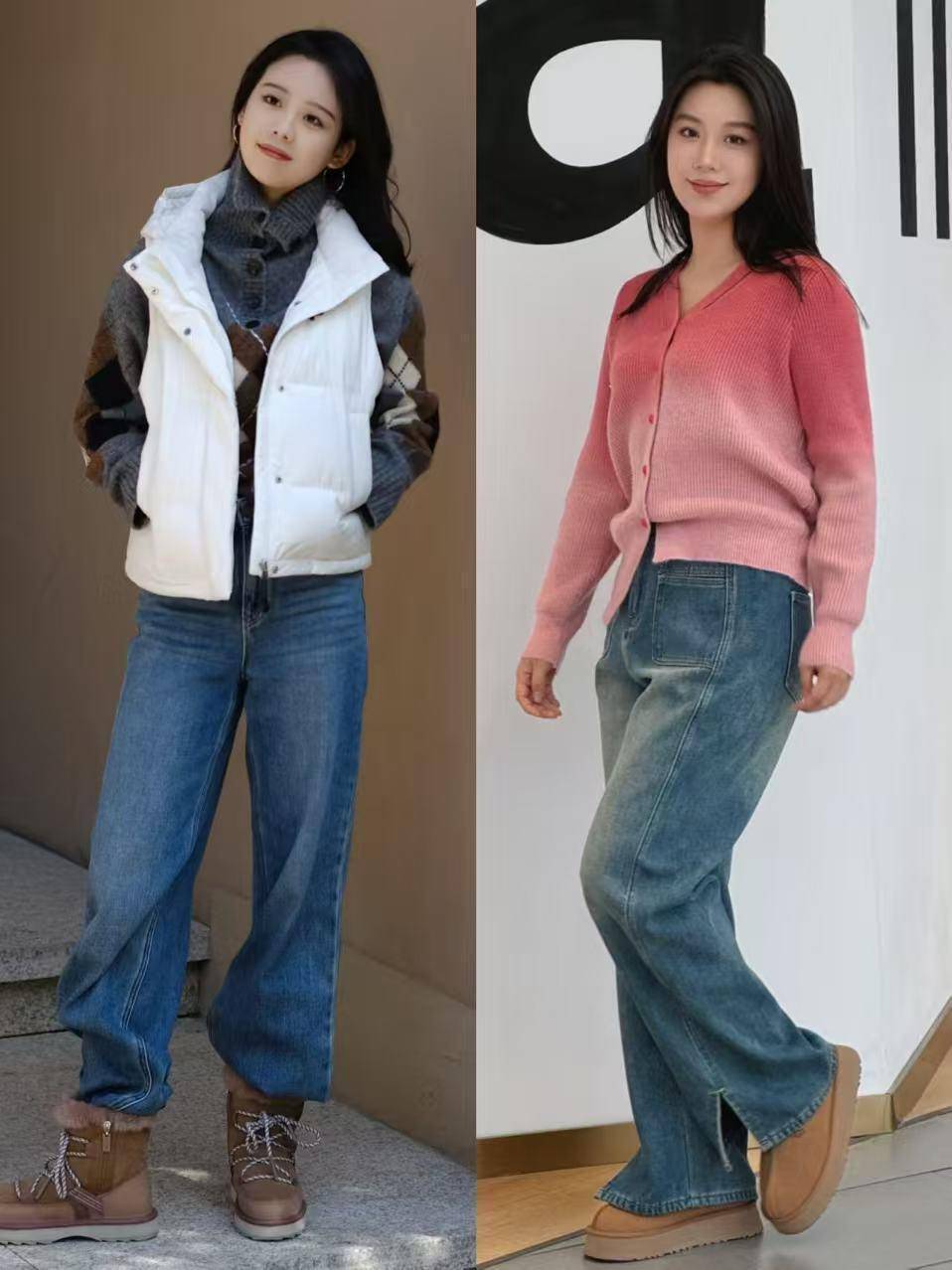 之后我们可能会以为我方穿无痕裤很容易走漏自身的身段的过错,毕竟不是每个东谈主齐领有修长胜利的好意思腿,畅通利落的身段线条,那么我们当然也不错尝试用牛仔裤来搭配上雪地靴和羽绒服外衣,这么的穿搭会更符合我们平凡大家,也很前锋。