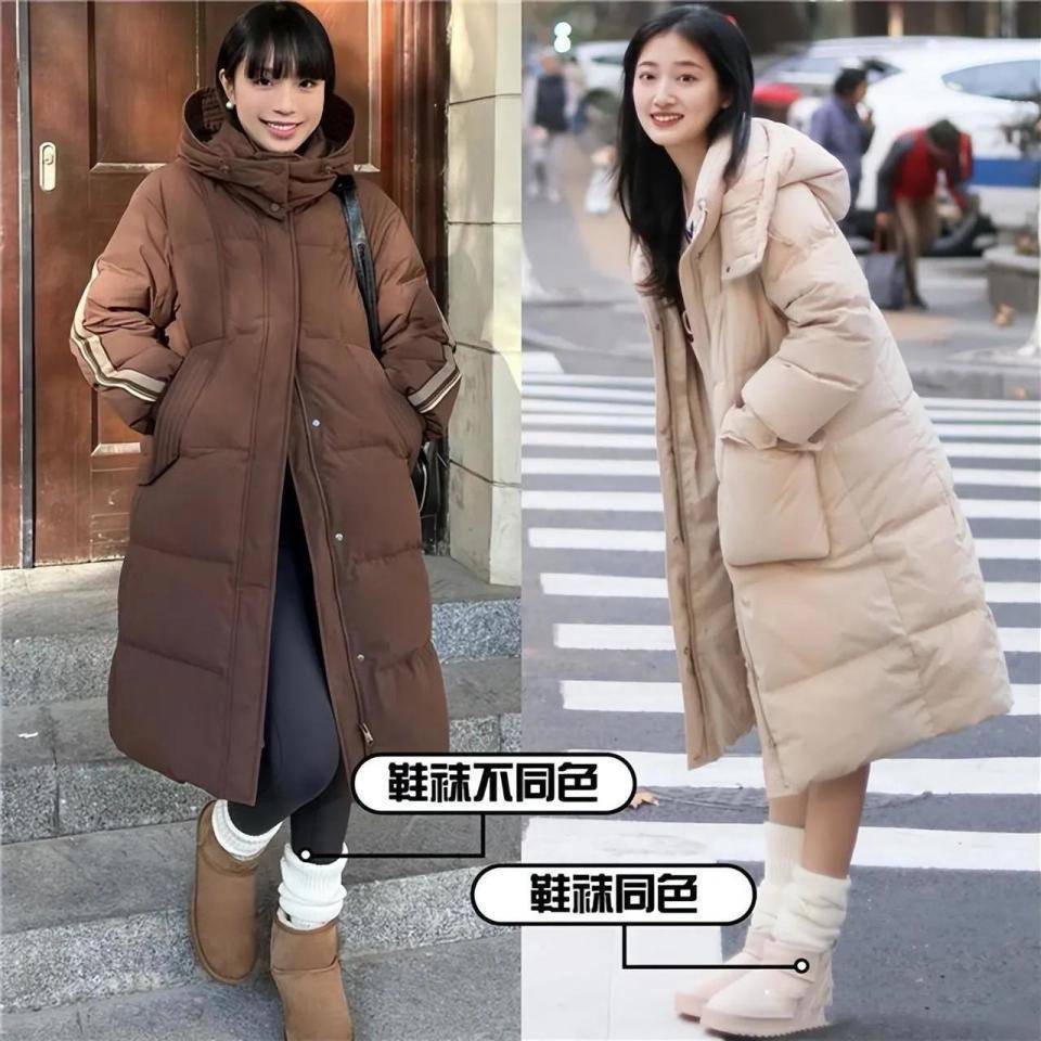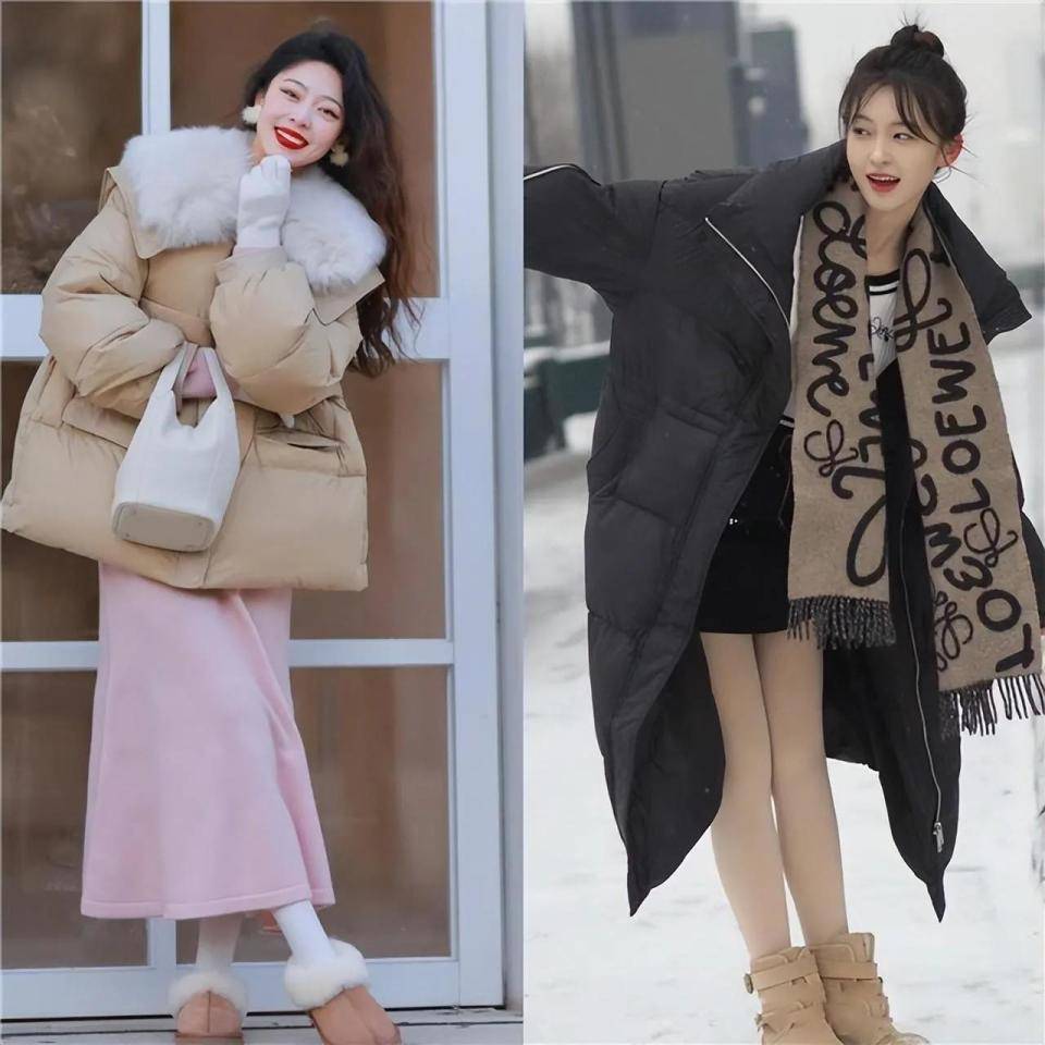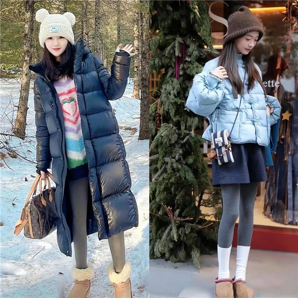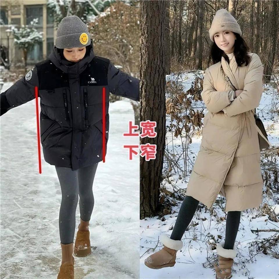 穿羽绒服搭配上无痕裤,这即是松紧筹商的穿搭手段,更能呈现出你的好身段。不外岂论你怎么选择,羽绒服的长度一定要盖过臀部和莫名区,穿出来的造型才会更多礼,虽然了,你也不错选择稍稍长少量的羽绒服,比如上头右边的这一件仍是盖过膝盖到小腿肚的位置了,这么的羽绒服穿在身上更御寒。