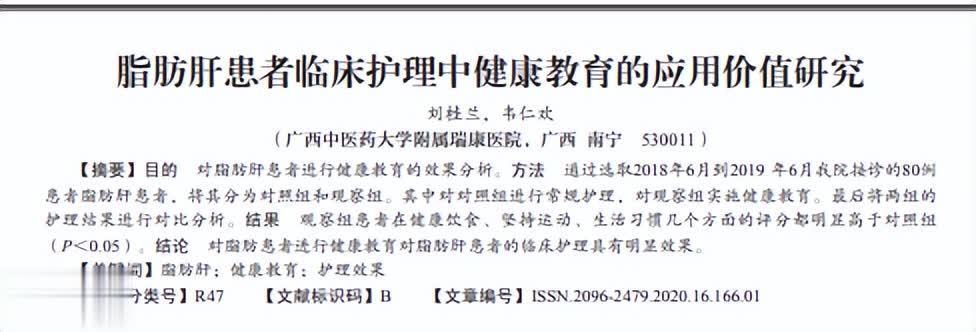 参考费力:[1]刘桂兰,韦仁欢,脂肪肝患者临床顾问中健康教授的诈欺价值相干,实用临床顾问学电子杂志美洲杯现金买球投注,2020-04-15